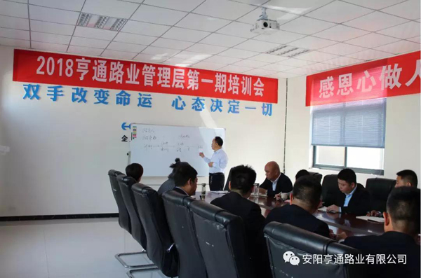 2018年4月18-20日,為加強(qiáng)公司管理隊伍建設(shè),增進(jìn)中層間的相互交流,培養(yǎng)鍛煉團(tuán)隊精神和協(xié)作意識,亨通路業(yè)全體中層從天南地北各個項目返回公司集中開展了為期三天的以“感恩心做人,責(zé)任心做事”為主題的專項培訓(xùn)活動。